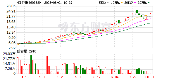 *ST亚振盘中涨停,已连收3个涨停板,截至9:25,该股报23.68元,换手率0.04%,成交量10.78万股,成交金额255.27万元,涨停板封单金额为4737.66万元。连续涨停期间,该股累计上涨15.74%,累计换手率为1.94%。最新A股总市值达62.22亿元。